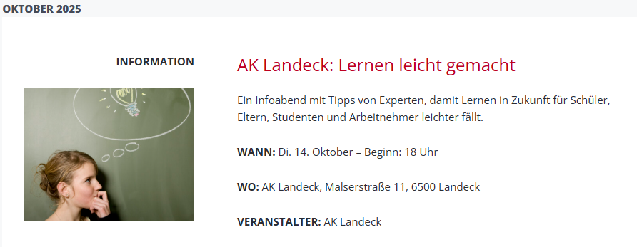 Infoabend der AK Tirol - Landeck zum Thema "Lernen leicht gemacht".
